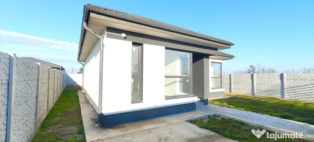 Această casă cu un singur nivel, amplasată într-un cadru liniștit, oferă un spațiu perfect pentru familii care își doresc confort și intimitate.Cu o suprafață utilă de 98 mp, locuința dispune de 3 camere luminoase, două băi moderne și 2 terase generoase de 30 m², ideală pentru momente de relaxare sau socializare în aer liber.