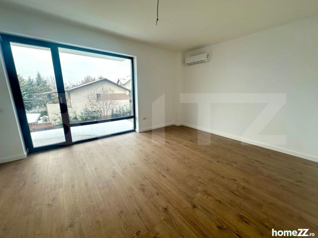 Apartamentul dispune de finisaje de cea mai buna calitate, aer conditionat, centrala termica proprie prin condesare, incalzire in pardoseala, geamuri panoramice, usa metalica completa cu 5 puncte de inchidere pentru intrarea in apartament, echipata cu incuietoare, shielduri, vizor si eticheta numar apartament, instalatie internet cu fibra optica pana in apartament, videointerfon si un loc de parcare exterior care este inclus in pret.