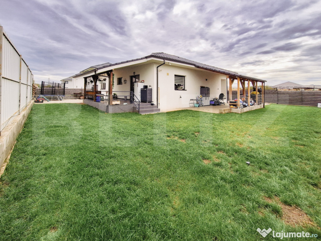 Blitz propune spre vanzare o casă finalizată în 2021, construită pe un teren de 482 mp, situată pe o stradă înfundată, ideală pentru cei care caută liniște, siguranță și intimitate. Locuința are o suprafață construită de 115 mp, desfășurată pe un singur nivel și este compartimentată eficient:– 3 dormitoare spațioase