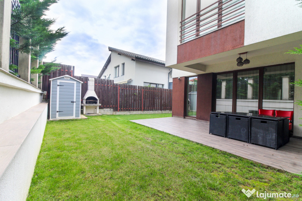 Dormitoarele generoase, cu suprafete intre 17 si 27 mp, ofera confortul dorit pentru intreaga familie, iar spatiile de depozitare bine gandite aduc un plus de functionalitate. Casa este echipata cu parchet de trafic intens, centrala in condensatie Viessmann, pereti dubli cu izolatie intre unitati, usa metalica la intrare si doua locuri de parcare.