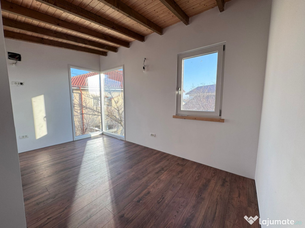 Cu o suprafață construită de 130 mp, proprietatea este inteligent compartimentată, oferind 4 dormitoare, 3 băi, un living luminos cu bucătărie open-space și un spațiu dedicat pentru lectură sau relaxare. Încălzirea electrică în pardoseală, controlabilă de la distanță, completează confortul modern al locuinței.