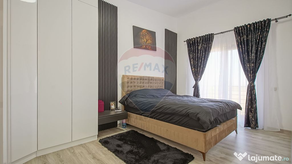 Locuința se vinde mobilată și utilată, exact ca în prezentare, cu excepția câtorva obiecte personale – practic vii doar cu hainele și te poți muta imediat. Mobilierul este realizat la comandă, cu materiale și finisaje premium, alese peste standardul oferit de dezvoltator.