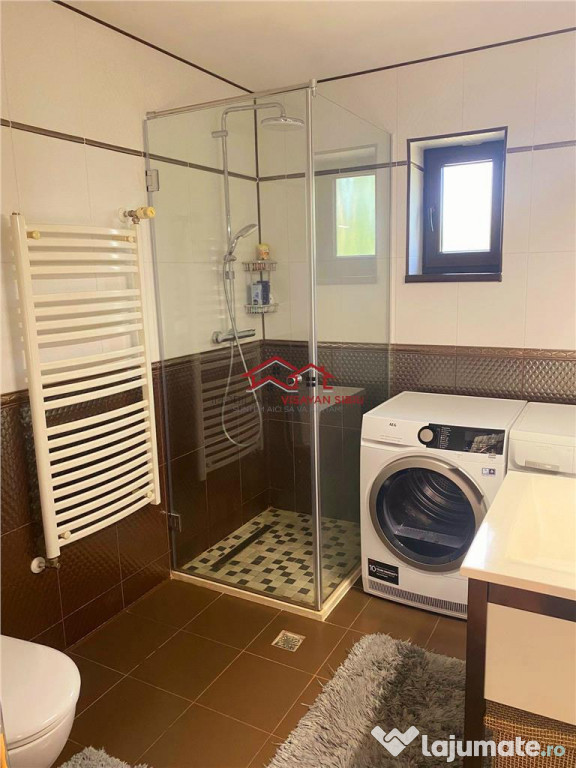 - baie, cu cabina de dus, masina de spalat si masina de uscat rufe - 5,8 mp