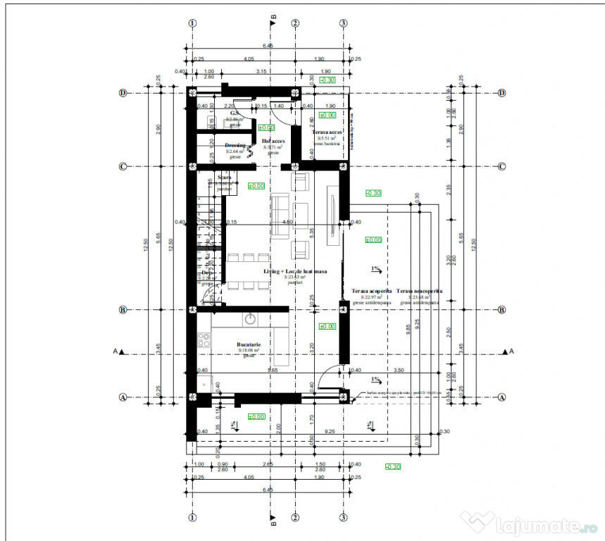 -Configurație interioară funcțională – spații clar delimitate, circulație fluentă între zonele de zi și de noapte
