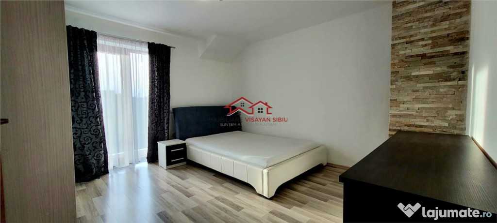 Agentie imobiliara va propune spre inchiriere casa individuala parter si etaj, situata in Selimbar, zona Triajului, la circa 1.5 km de Mall-ul Shoping City Selimbar si cu acces simplu, comod si rapid catre orice directie, inclusiv zona centrala si istorica a orasului Sibiu, drumuri nationale si autostrada.Imobilul este constructie moderna din anul 2018, are suprafata de 90 mp utili terasa exterioara acoperita balcon, este structurat, parter si mansarda, are curte individuala si este compartimentat astfel:
