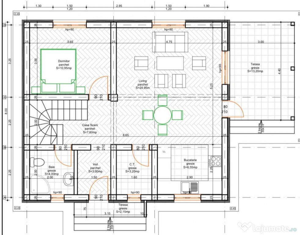 - hol, living, bucãtãrie open - space, camerã, baie, camerã tehnicã, casa scãrii;