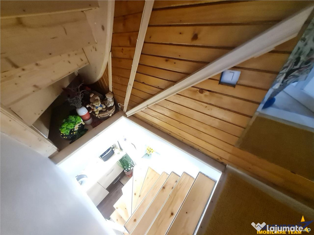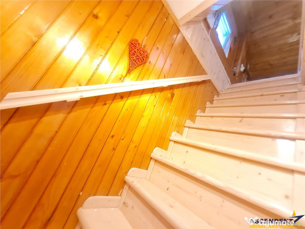 La mansarda: 2 camere deschise si amenajate rustic in lemn, luminoase, cu geamuri tip velux. Una dintre acestea poate fi folosita ca birou sau sala de lectura.