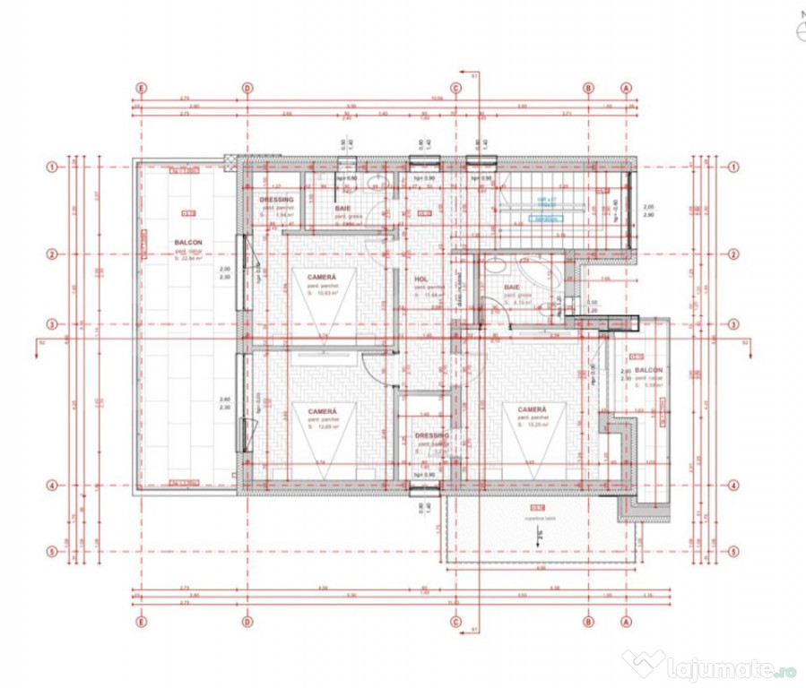 -Etaj: 3 dormitoare, fiecare cu baie proprie, 2 dressinguri, hol și 2 terase spațioase, însumând 25 mp – perfecte pentru momente de relaxare în aer liber.