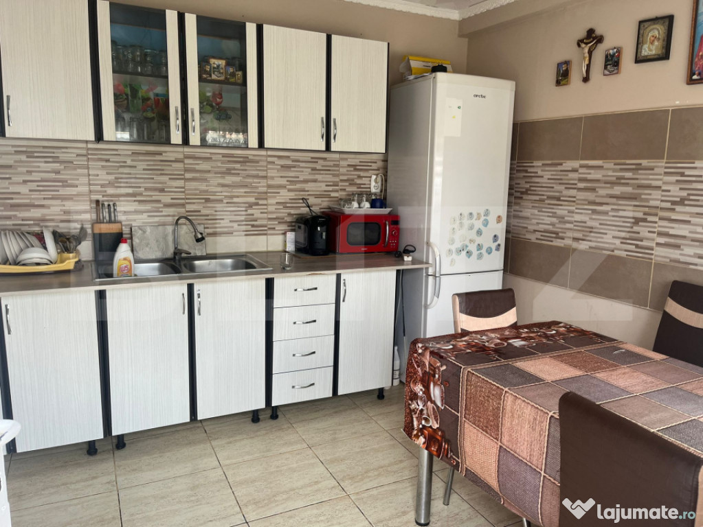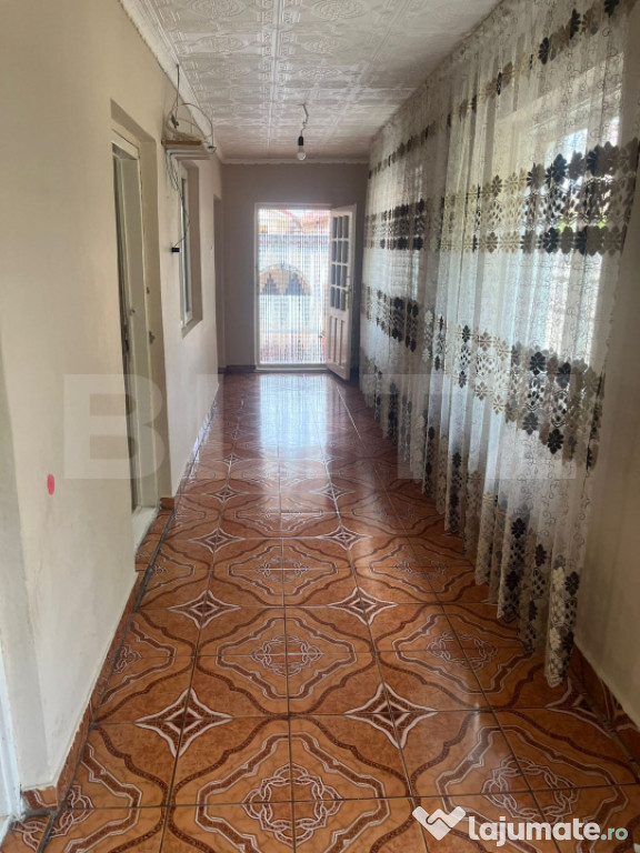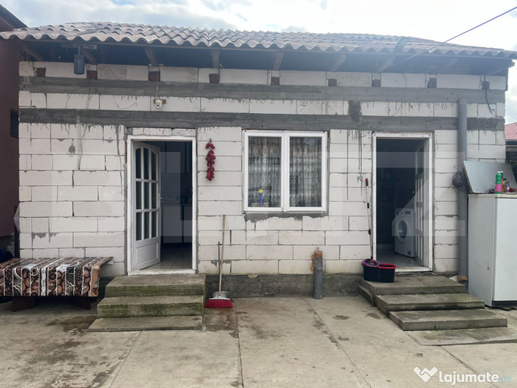 Proprietatea dispune de aproximativ 100 mp utili fiind compusa din 2 constructii separate. Casa care este si finisata complet, este construita din caramida si compartimentata astfel : un hol cu 2 dormitoare spatiase si un living + o camera tehnica pentru centrala , incalzirea facandu-se prin centrala cu lemne. Cea de-a doua constructie , fiind din BCA, cuprinde o baie si o bucatarie. Ca si utilitati dispune de apa curenta si energie elctrica, canalizarea fiind la frontul proprietatii. Se află într-o zonă accesibilă, liniștită și bine conectată la rețeaua de utilități.