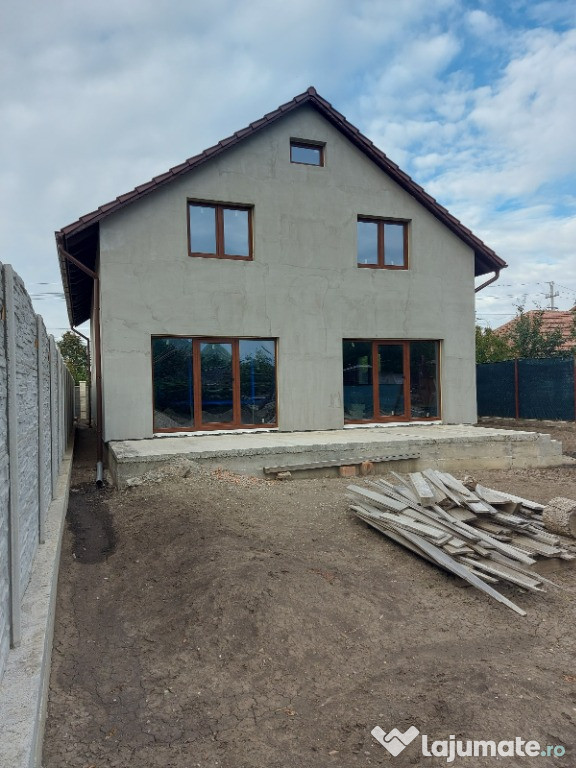 Vand casa in constructie in Pecica.Casa este izolata la exterior iar la interior este la rosu,curent trifazic, autorizatie valabila pana in martie 2026.