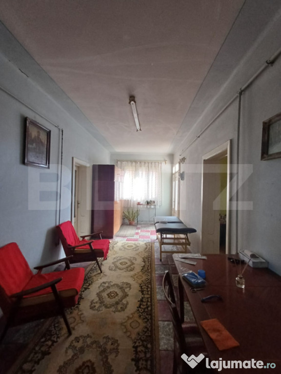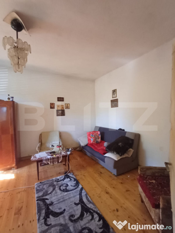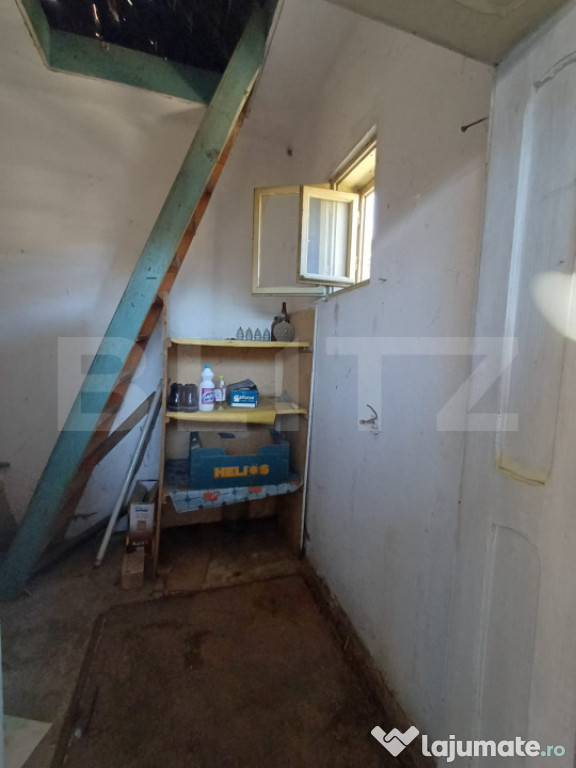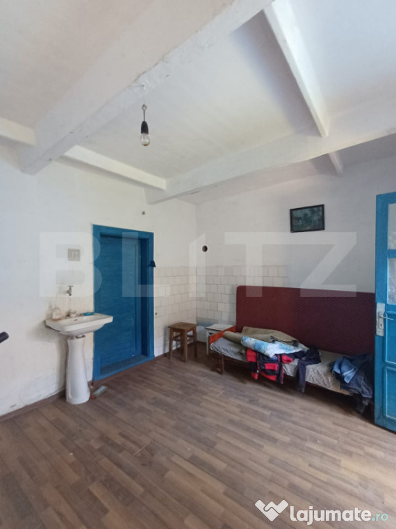 Blitz propune spre vanzare o proprietate situata in Mihai Viteazu. Are o suprafata locuibila de 125 mp pe un teren cu supratafa de 1400 mp. Proprietatea dispune de 3 camere, 2 holuri, bucatarie, baie, 2 camari si 2 beciuri. O canara este cu urcare in pod, podit de circa 90 mp si tot din camara se coboara si in beci unde avem si o fantana construita din inele de beton. In camere exista 3 sobe de teracota, podelele sunt din lemn lacuit in stare buna. Casa este neizolata si are geamuri din lemn. In curte avem o bucatarie de vara de circa 20 mp cu camara, alipita garajului de circa 24 mp. Casa dispune de centrala termica pe gaz, este racordata la canalizare, apa curenta si electricitate. Necesita renovare. Proprietatea este imprejmuita, in gradina gasim pomi fructiferi. Aceasta casa ofera o oportunitate perfecta pentru cei care cauta un refugiu intr-o zona linistita in apropiere de Cheile Turzii. Daca doresti mai multe informatii si vizionare, iti stam cu drag la dispozitie. Contacteaza-ne!Cod ofertă / ID BLITZ: P153895