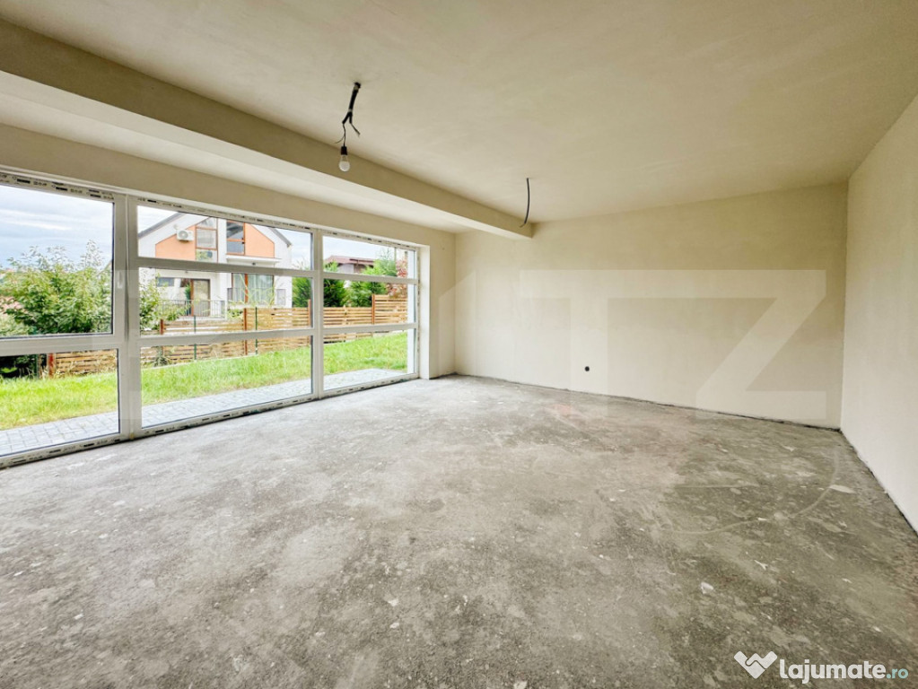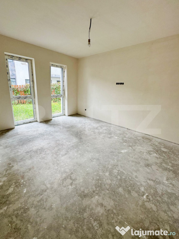Blitz oferă spre vânzare apartamentul 1 dintr-o casă individuală compartimentată în două apartamente, situată într-una dintre cele mai apreciate zone rezidențiale din Cluj-Napoca, în apropierea zonelor verzi și a principalelor puncte de interes ale orașului.Apartamentul se desfășoară pe două niveluri (P+1) și beneficiază de curte proprie de 357 mp.