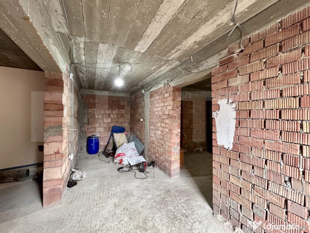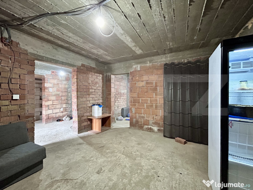 Parterul este în stadiu de roșu, oferind libertate totală pentru compartimentare și finisaje.