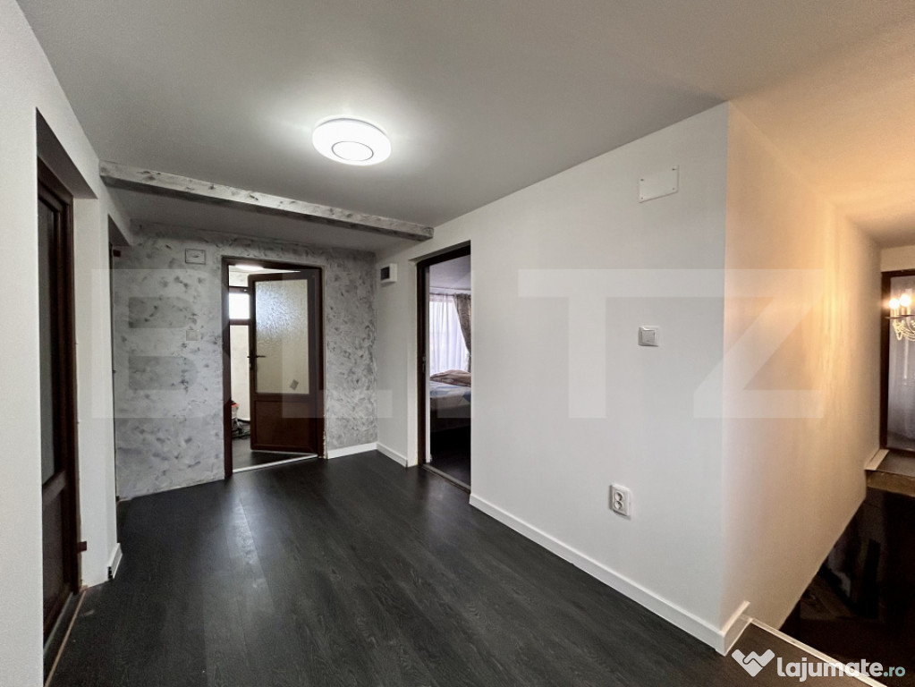 Etajul este finisat: gresie, parchet, instalații trase, gata de locuit.