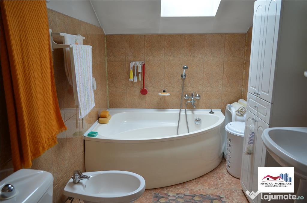 Casa este dotata cu geamuri termopan, parchet, gresie faianta si este utilata cu frigider, aragaz, masina de spalat rufe, etc.