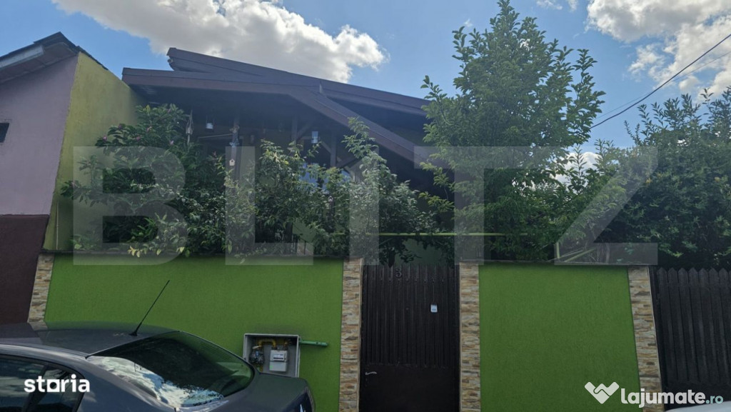 Casă spațioasă cu mansardă, curte amenajată cu grătar