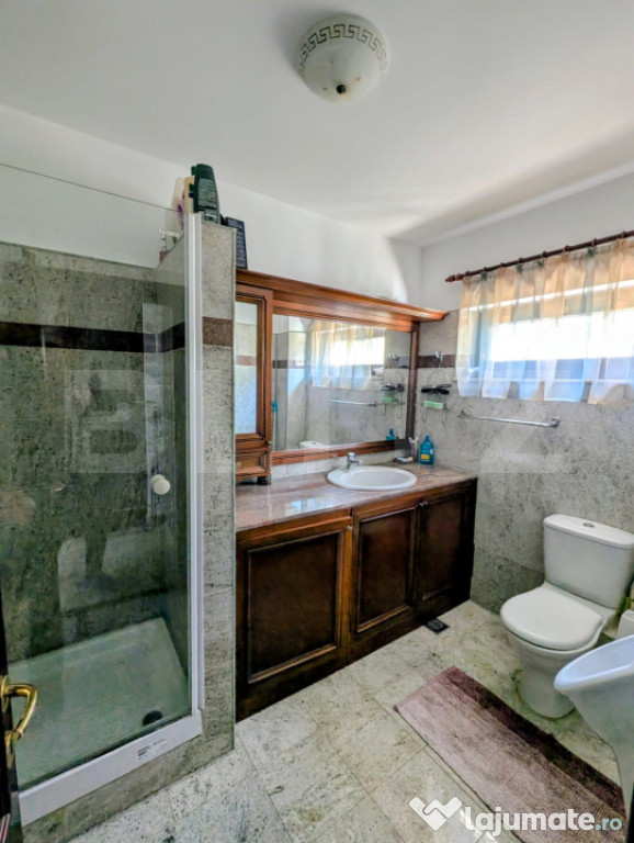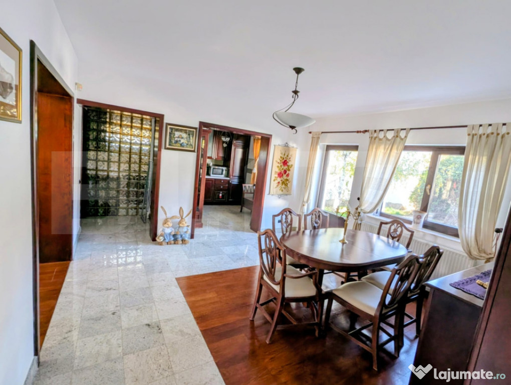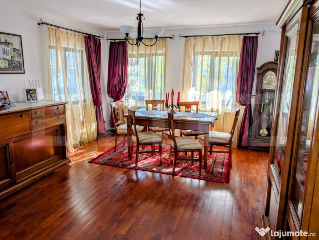 Descoperiți eleganța și confortul unei reședințe deosebite, ideală pentru cei care apreciază spațiul, intimitatea și calitatea.Proprietatea dispune de o suprafață utilă de 305 mp, inteligent compartimentată, și este amplasată pe un teren generos de 1000 mp, oferind o curte amenajată cu zonă verde si terasă.