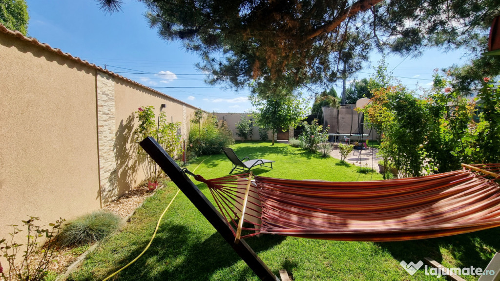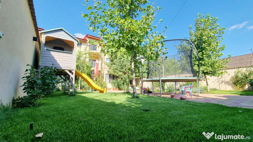 In curte exista o casuta de lemn pentru copiii+ tobogat si o trambulina imensa, iar in spatele casei este o magazie de aprox 12 mp.