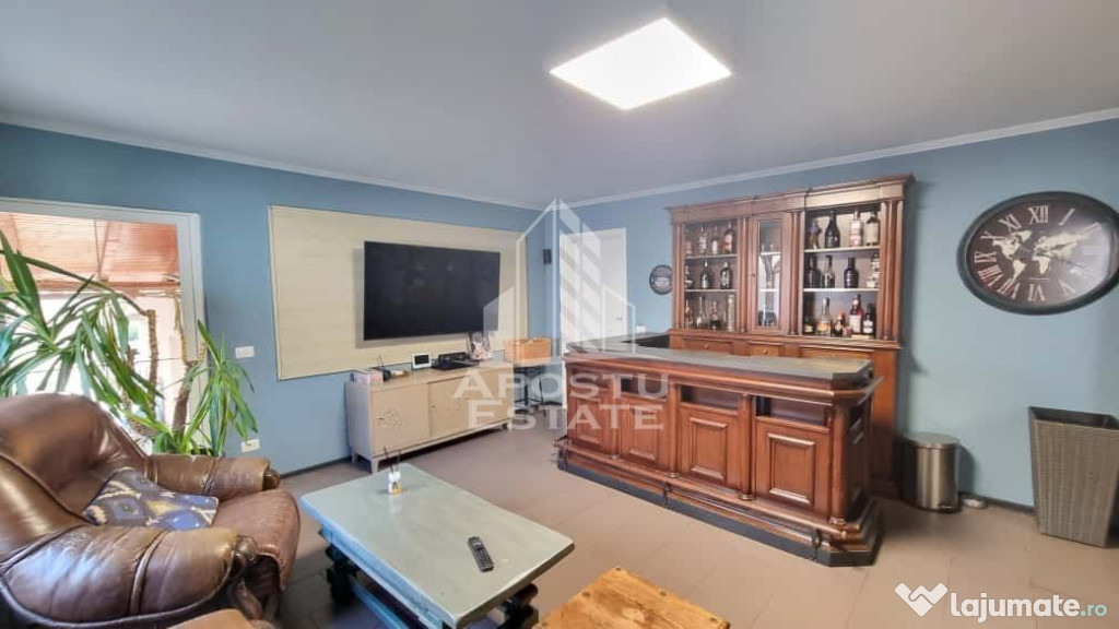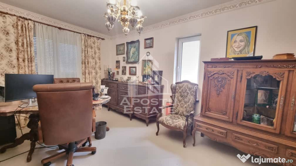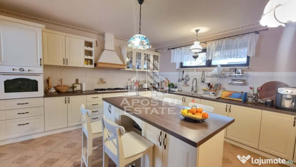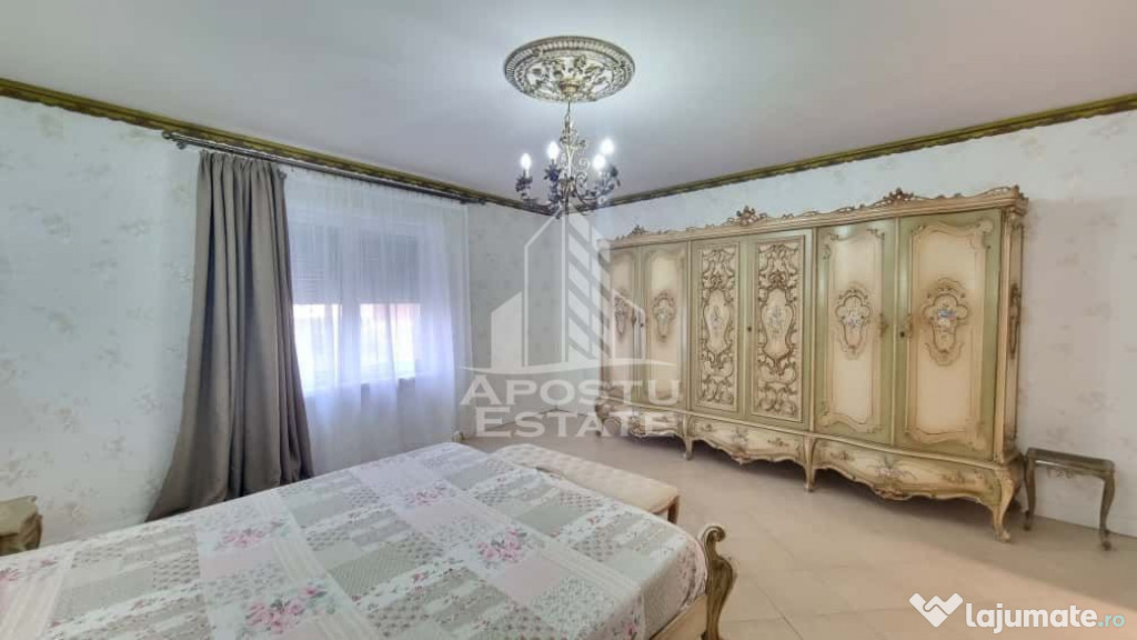 Apostu Estate va ofera spre vanzare o casa pe parter complet renovata si mobilata in stil clasic si cu lemn masiv in anul 2015, situata pe un teren generos de 1800 mp, in GiarmataCasa are o suprafață de 160mp utili si este compartimentata astfel: