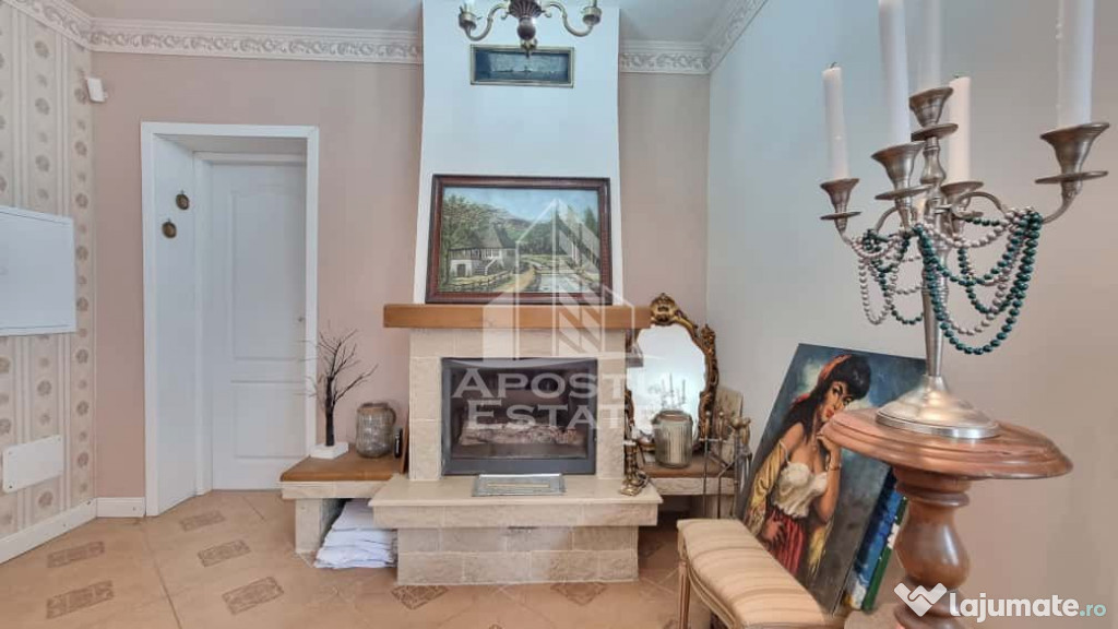 - camera de zi cu loc de luat masa si semineu functional
