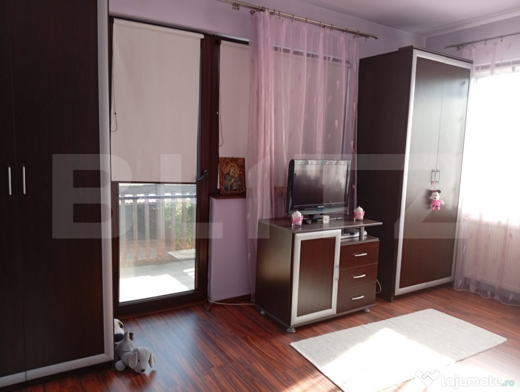 Dormitorul matrimonial ne asigura iesire pe balconul care ne ajuta sa descoperim superba priveliste a muntilor.
