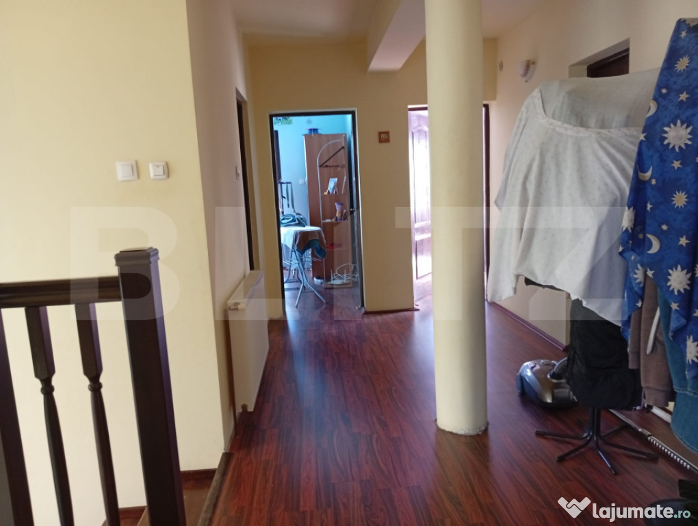 Blitz va ofera spre vanzare o casa magnifica,cu o curte superba,verdeata si o priveliste magnifica spre lantul muntos.Casa de 130 mp este impartita pe 3 niveluri: pivnita,parter,etaj, fiind compartimentat astfel: