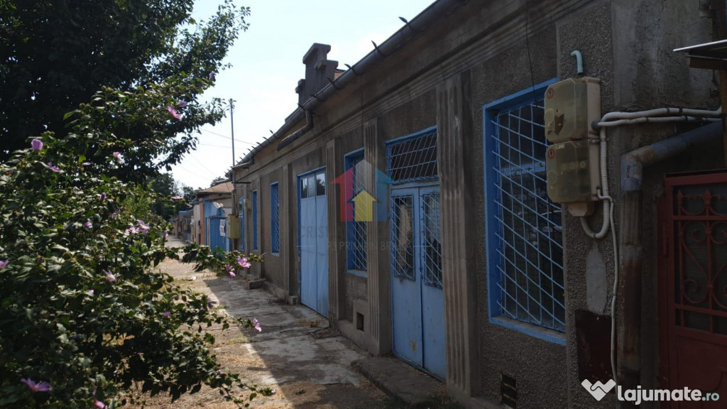 Teren 1166 mp, cu casa demolabila, garaj si doua hale, Brailita*Imprejmuit
