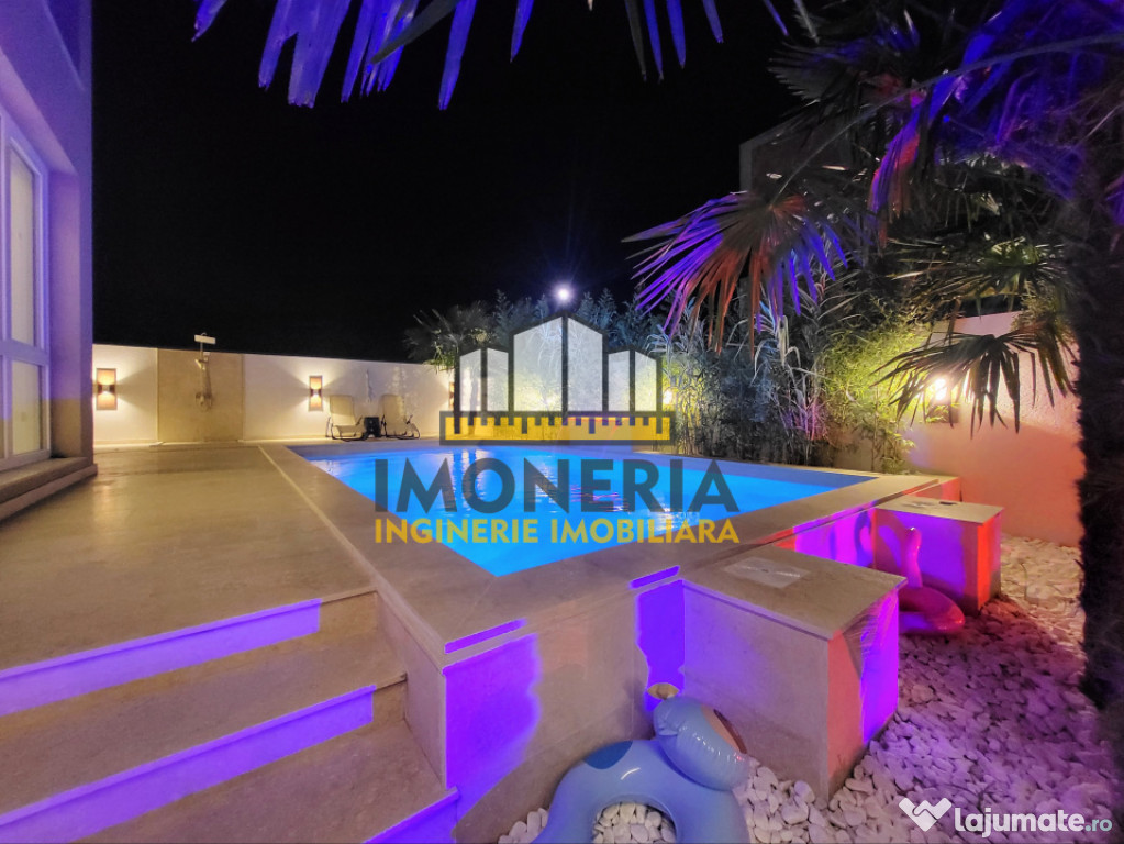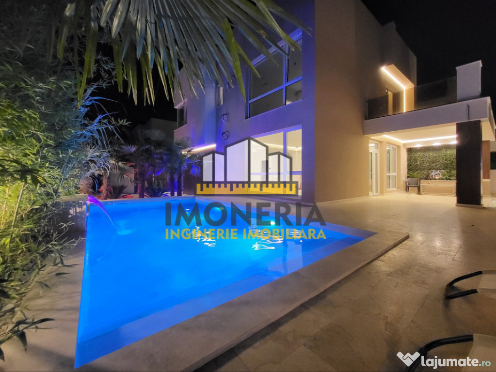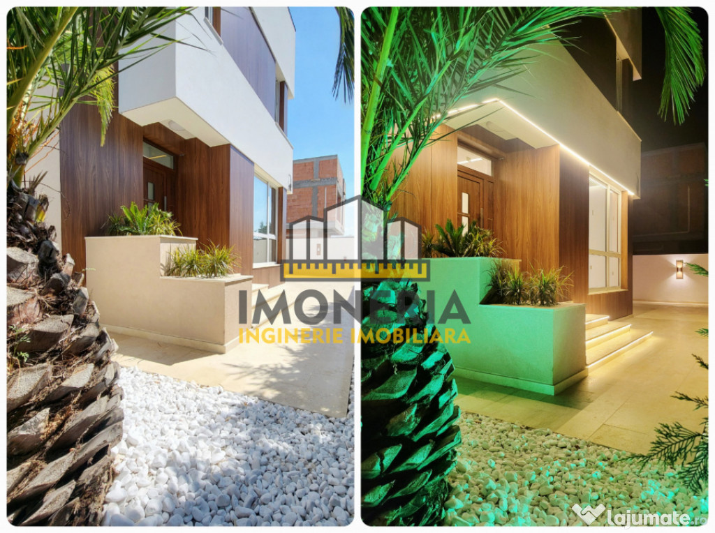 Vila din galeria foto, finalizata in 2025, poate fi solutia cautarilor tale. Arhitectura Mediteraneana si peisagistica au fost armonizate in asa fel incat sa te simti ca in vacanta de fiecare data cand ajungi acasa. Iar piscina exterioara iluminata RGB, impreuna cu iluminatul arhitectural, prezent atat pe fatada, cat si in curte, completeaza peisajul mai ceva ca la "Insula Iubirii". :p