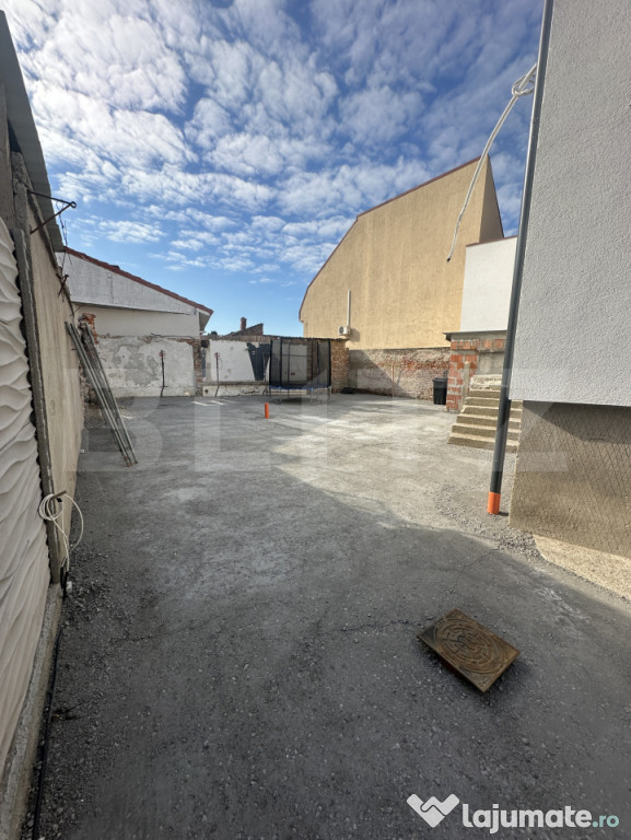 Finisajele sunt de calitate premium, iar întregul proiect a fost realizat sub îndrumarea unui designer de interior. S-au folosit materiale durabile și elegante, care oferă atât funcționalitate, cât și estetică rafinată.Curtea este spațioasă și bine amenajată, oferind posibilitatea de parcare pentru 5-6 autoturisme – un avantaj major dacă se dorește transformarea proprietății într-o clinică sau spațiu comercial cu trafic frecvent.