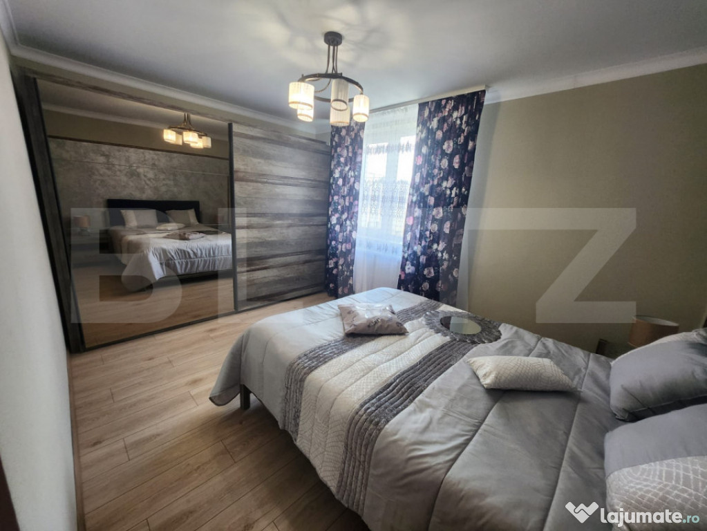 Blitz vă prezintă o casă cu 4 camere inchiriat, mobilata si utilata,, cu un design bine planificat și dotări moderne, perfectă pentru confortul dumneavoastră.. Plan Parter: Hol: La intrare, veți fi întâmpinați de un hol, oferind acces facil către toate încăperile casei. Bucătărie: Bucătăria este amenajată într-un mod practic și elegant, cu mobilier de calitate și toate echipamentele necesare. Suprafața generoasă a bucătăriei permite desfășurarea activităților culinare în condiții optime. Baie: Casa dispune de doua bai moderne,una la parter,iar cealalta la etaj, complet utilate și amenajate cu atenție la detalii. 3 Dormitoare: Cele trei dormitoare oferă spațiu privat pentru odihnă și relaxare. . Dotări și Finisaje: Mobilă de calitate: Întreaga casă este mobilată cu piese de mobilier de înaltă calitate, garantând durabilitate și aspect estetic plăcut. : Pregătită cu atenție la detalii.. Iluminat public: Vecinătatea beneficiază de iluminat public, contribuind la atmosfera plăcută și sigură a zonei. Terasă: Cu o suprafață de 10 mp, terasa oferă un spațiu exterior excelent pentru relaxare și socializare, avand un mobilier de terasă frumos. La subsol, proprietatea dispunde de o pivnita de 28 de mp.Curtea este amenajata cu dale si gazon, Toate utilitățile: Proprietatea dispune de toate utilitățile necesare, inclusiv apă, canalizare, gaz și electricitate. Strada urmează să fie asfaltată, contribuind la accesibilitatea și confortul deplasării. Această casă reprezintă o oportunitate excelentă pentru cei care caută un loc de trai modern, confortabil și bine echipat,intr-o zona linistita si retrasa a orasului. Nu ezitați să ne contactați pentru mai multe informații sau pentru a programa o vizionare. Pentru mai multe detalii contactati-ne cu incredere!Cod ofertă / ID BLITZ: P153752