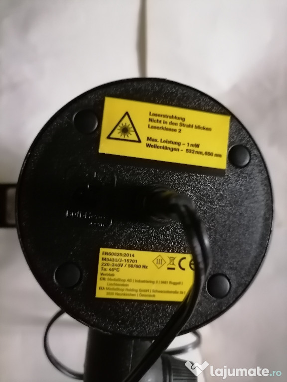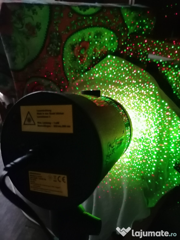 Proiector lumini laser pentru sărbătorile de iarnă. Este pentru exterior, dar se poate folosi și la interior. Proiecția este în două feluri - roșie și verde sau doar verde. Merge la curent 220V, are transformator.Anuntul Proiector lumini laser este adaugat de pe LaJumate.ro.