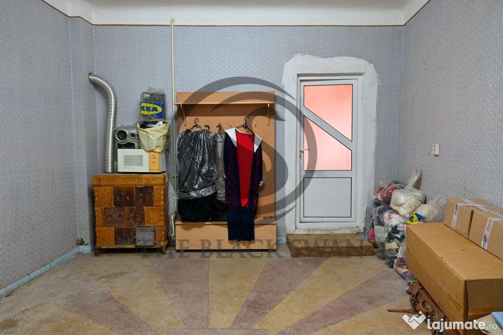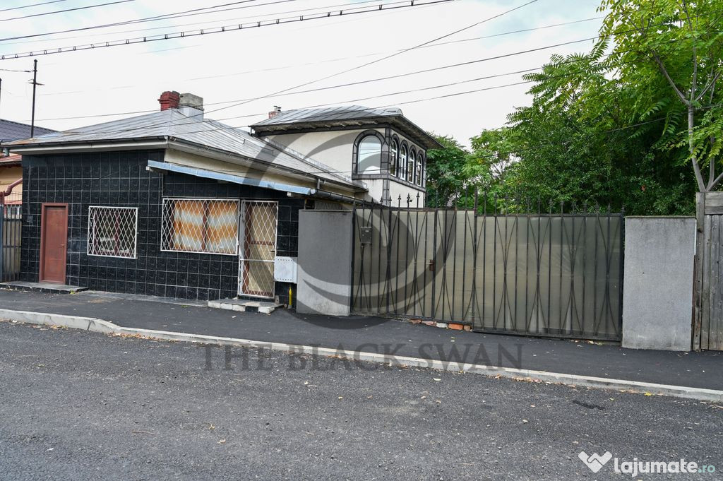 Parterul casei contine trei camere spațioase cu fațadă către strada principală și cu două intrări separate, aspect ce oferă oportunități excelente pentru diverse destinații comerciale sau de birouri. Tot aici, dinspre interiorul curții, se pătrunde intr-un hol ce face lagatura cu livingul, o bucătărie închisă, funcțională, și o baie utilată. Accesul este facilitat de două căi distincte, amplificând flexibilitatea utilizării spațiului.