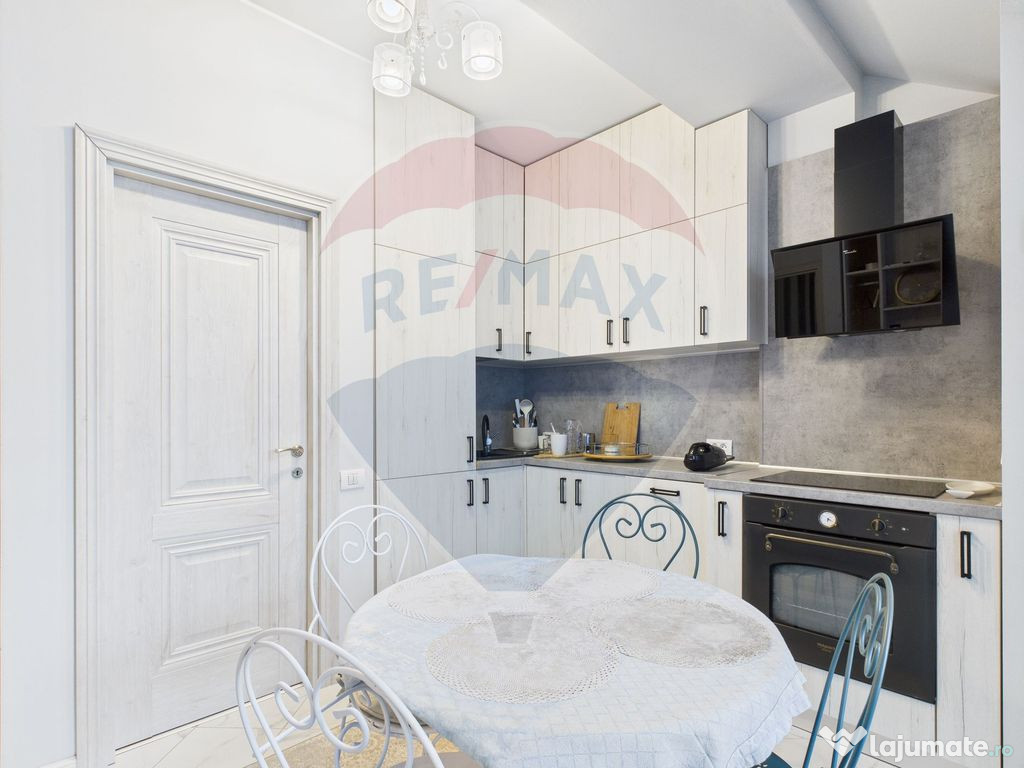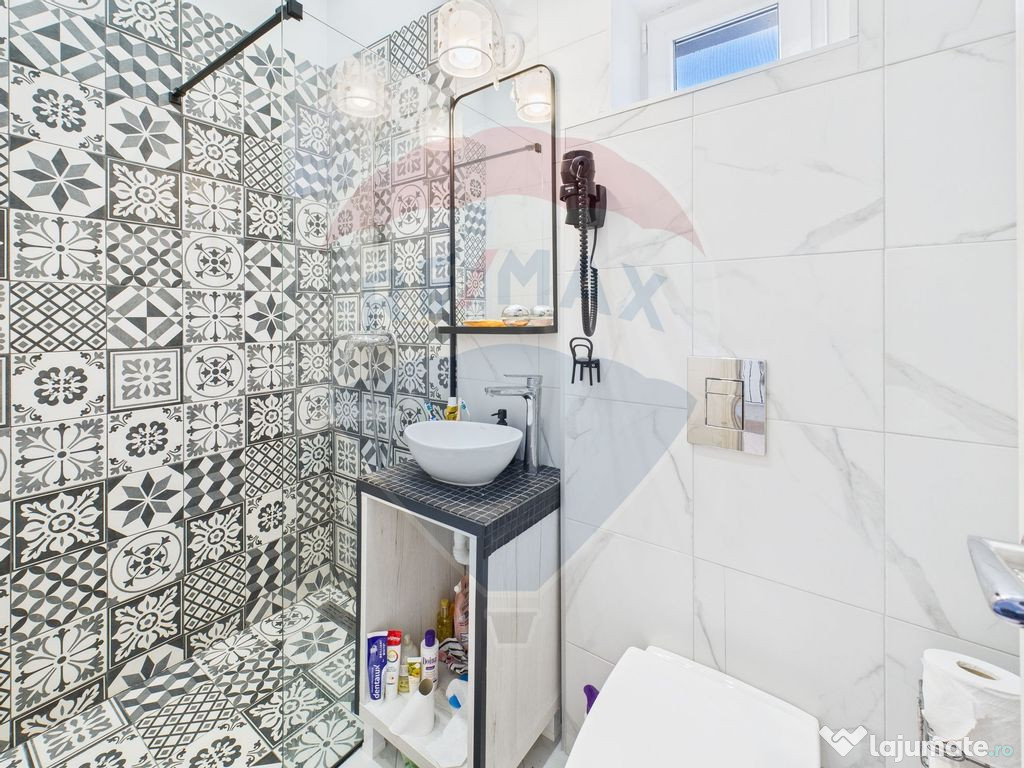 Chicineta de la etaj permite împărțirea imobilului în două zone distincte, un avantaj important pentru cei care doresc să optimizeze proprietatea pentru închiriere în regim hotelier.