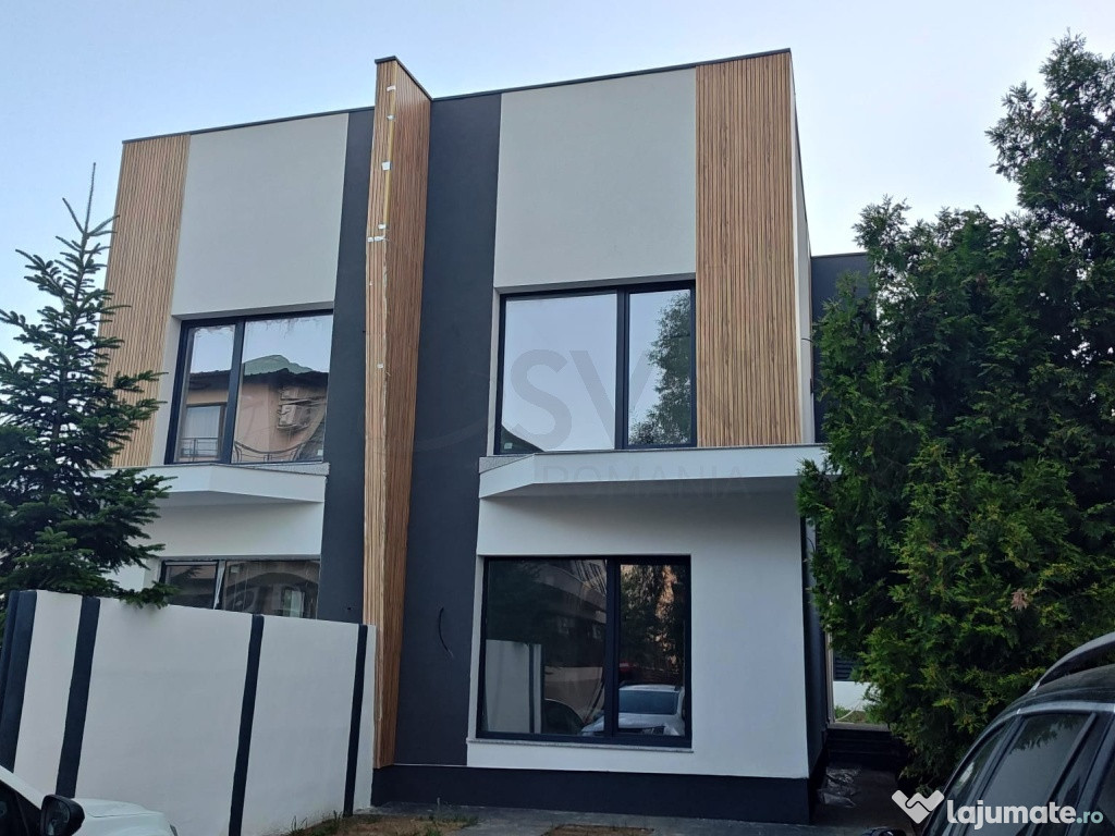 Casa este compartimentata optim,fiind compusa din 4 camere ,din care 3 dormitoare ,living spatios cu zona de dinning,bucatarie inchisa,3 bai,terasa exterioara si 2 locuri de parcare exterioare.