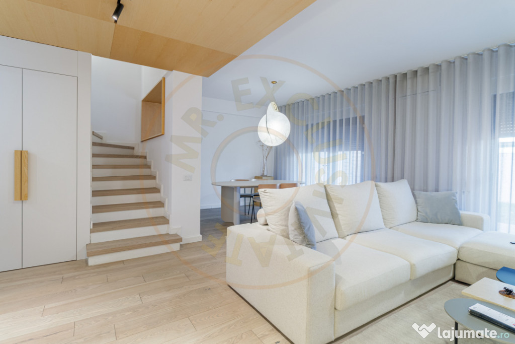 Îți prezint un proiect rezidențial finalizat în 2024, situat într-o zonă liniștită din Voluntari, pe strada Galata 77, aproape de pădure și de facilitățile importante din nordul Capitalei. Ansamblul are 10 locuințe moderne, construite cu atenție la detalii. La majoritatea caselor poți face modificări după bunul tău plac. Tu alegi finisajele, ușile, sistemele de aer condiționat sau modul în care compartimentezi mansarda, care se predă la gri.Pozele sunt cu titlu de prezentare și arată o amenajare finală realizată într-una dintre casele din complex.
