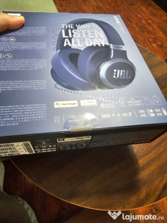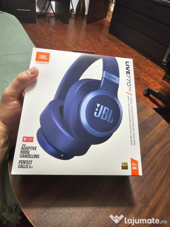 Casti audio wireless over-ear JBL LIVE 770NC, True Adaptive NC, Bluetooth, Multi-Point, AlbastruSunt noi, sigilate.