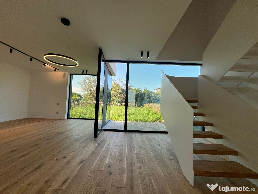 Vila este nouă, elegantă și spațioasă, beneficiind de un design contemporan, finisaje premium și dotări de ultimă generație.