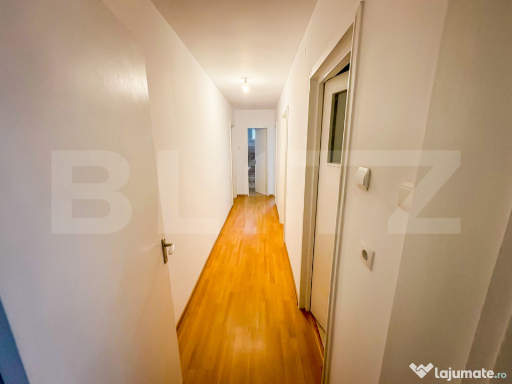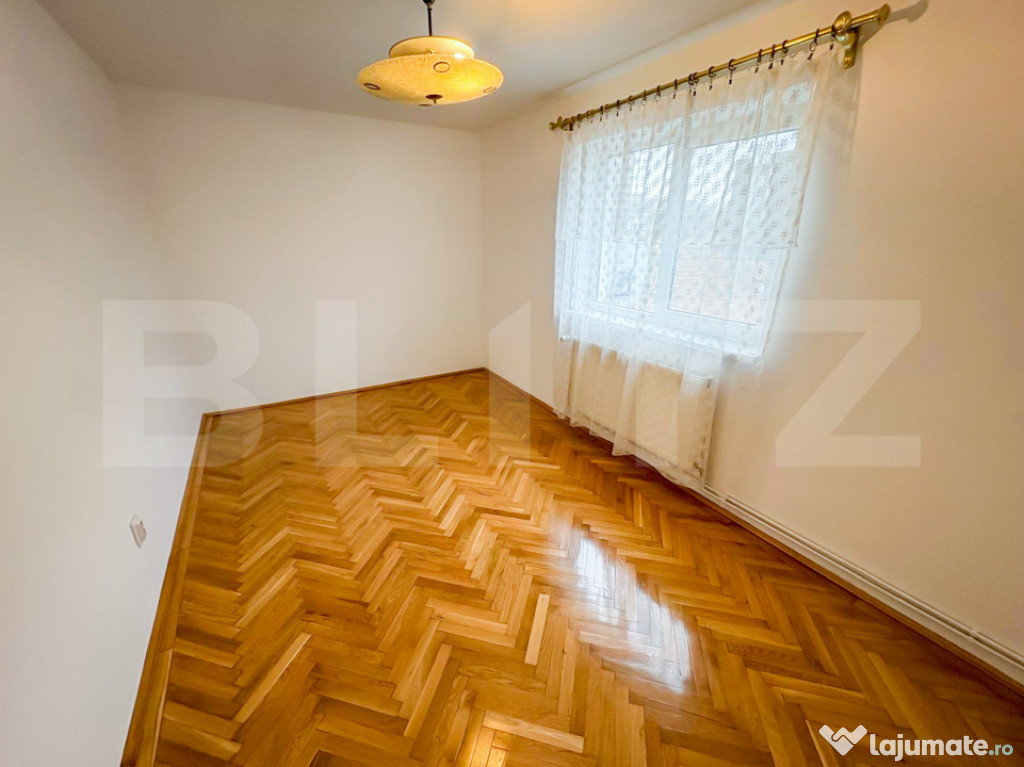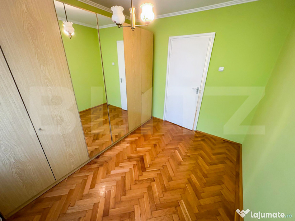 Blitz vă propune spre vânzare un apartament spațios cu 4 camere semi-decomandat, situat la etajul 3, având o suprafață utilă de 80 mp². Locuința este parțial mobilată și dispune de o compartimentare eficientă: 3 dormitoare, o bucătărie, 2 băi cu geam pentru aerisire, o debara cu ventilație naturală și un balcon deschis cu vedere panoramică către oraș.Apartamentul beneficiază de centrală termică proprie și geamuri termopan, oferind confort termic sporit pe tot parcursul anului.