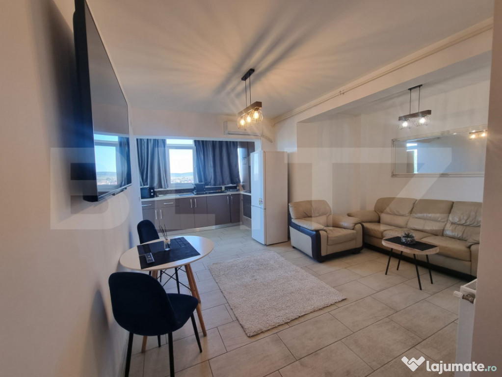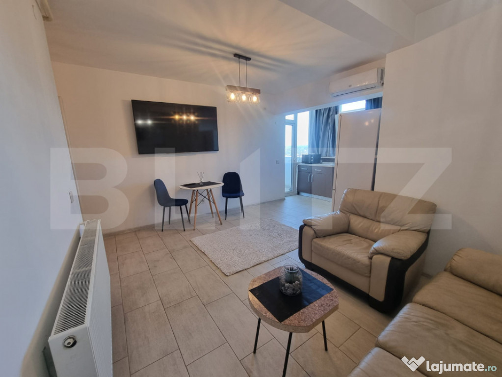 Blitz va propune spre inchiriere un apartament modern cu 2 camere, tip open-space, situat la etajul 5 din 10, într-un bloc nou din cartierul Craiovita Noua, zona Promenada Mall. Locuința include un loc de parcare privat, monitorizat video. Apartamentul este compartimentat inteligent, oferind o bucătărie complet utilata, open-space integrată cu livingul, dormitor, baie și un balcon spațios cu vedere panoramica asupra zonei în care este amplasat. Dotările sunt de ultimă generație: electrocasnice moderne, mașină de spălat, frigider, aragaz, hotă, cuptor cu microunde, aer condiționat, TV și centrală termică proprie pe gaz. Accesul este facil catre mijloacele de transport in comun si statii de taxi. In apropiere regasim scoli, gradinițe, supermarket-uri (Kaufland, Penny, Promenada Mall). Blocul dispune de lift modern pentru un plus de confort. Te așteptăm la vizionare pentru mai multe detalii!Cod ofertă / ID BLITZ: P153514