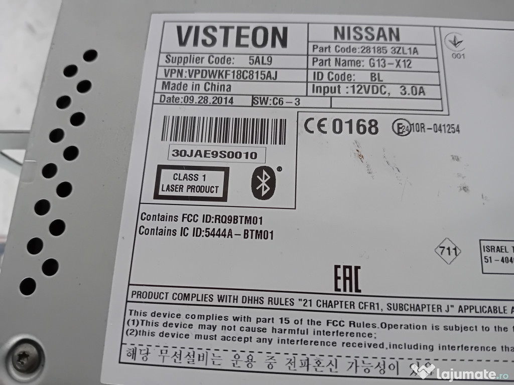 CD Player Nissan Pulsar 2015. Cod(uri): 30JAE9S0010. Piesele comercializate sunt originale, provenite din dezmembrari. Dispunem de o gama larga de piese multimarca. Piesele sunt verificate inainte de a fi puse spre vanzare. In caz de neconformitate piesa se poate returna. Va rugam sa verificati disponibilitatea pieselor telefonic. Trimitem in tara prin curier.Marcă: Nissan