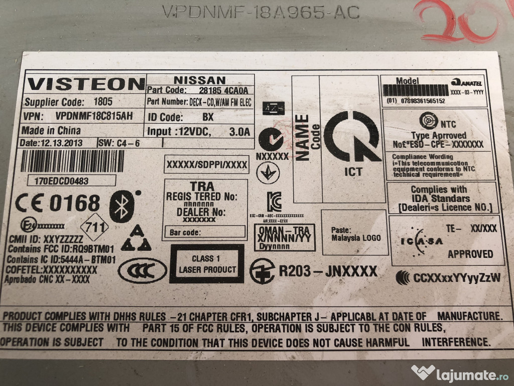 CD Player Nissan Qashqai 2014. Cod(uri): 281854CA0A. Piesele comercializate sunt originale, provenite din dezmembrari. Dispunem de o gama larga de piese multimarca. Piesele sunt verificate inainte de a fi puse spre vanzare. In caz de neconformitate piesa se poate returna. Va rugam sa verificati disponibilitatea pieselor telefonic. Trimitem in tara prin curier.Marcă: Nissan