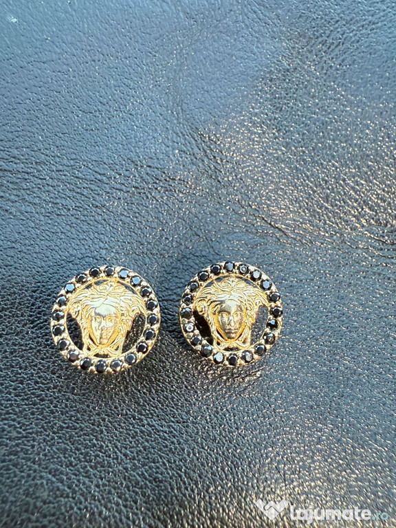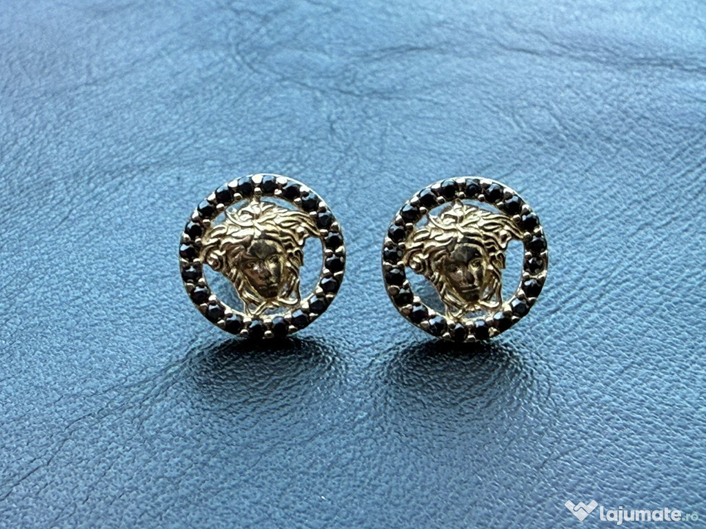 Cercei din aur de 14k marca Versace, o bijuterie elegantă și rafinată pentru orice ocazie.Cercei de aur 14k (585) cu pietre negre