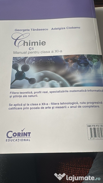 Georgeta Tănăsescu, Adalgiza Ciobanu: Chimie C1 - Manual pentru clasa a XI-a, Editura Corint EducaționalAnuntul Chimie C1- Manual pentru clasa a XI-a este adaugat de pe LaJumate.ro.