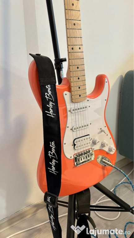 Vând pachet complet pentru chitară, toate în stare ca noi, aproape nefolosite:Fender Squier Sonic Stratocaster HSS MN – Tahitian Coral