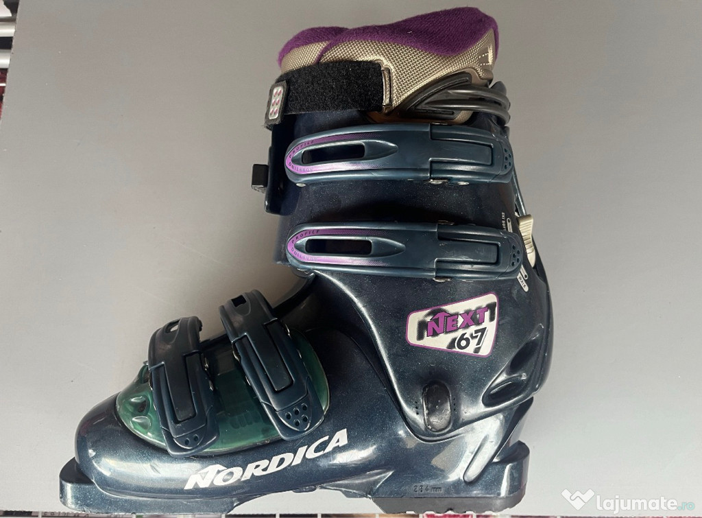 Clapari ski Nordica, mărime 24,5 (EU 36-37), cu sistem Walk si Ski soft si hard! prindere 284 mm. Se ...