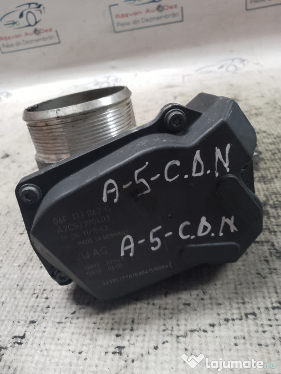 Clapeta acceleratie Audi A5 (cod motor: CDN) 2011. Cod(uri): 06F133062Q. Piesele comercializate sunt originale, provenite din dezmembrari. Dispunem de o gama larga de piese multimarca. Piesele sunt verificate inainte de a fi puse spre vanzare. In caz de neconformitate piesa se poate returna. Va rugam sa verificati disponibilitatea pieselor telefonic. Trimitem in tara prin curier.Marcă: Audi