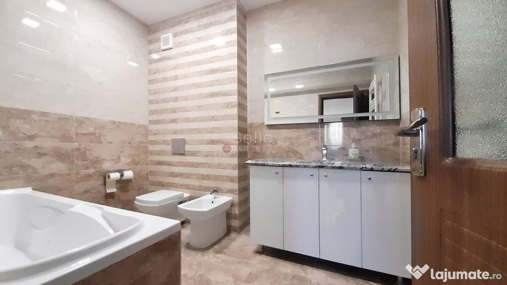 - electrocasnice noi in bucatarie( frigider, plita, hota, masina de spalat vase, expresor de cafea incorporat in mobilier)