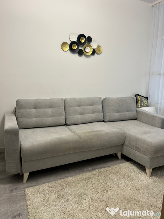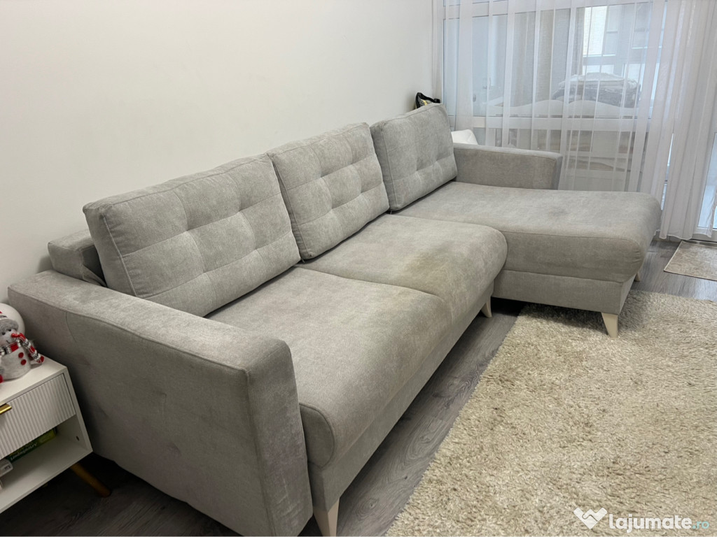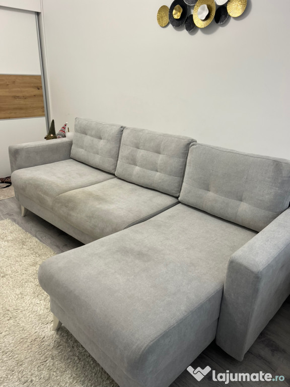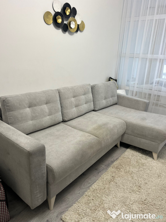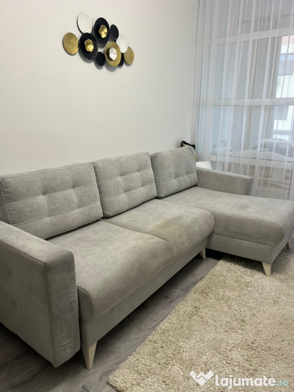 Canapea de colț gri, în stare bună de utilizare. Mobilă confortabilă și practică pentru living sau dormitor. Poate fi aranjată în diferite configurații pentru a se potrivi spațiului tău. Dimensiuni:Suprafața de dormit 2,18/1,35