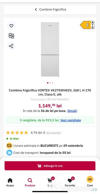 Combina frigorifica Vortex , stare perfecta, cumparata, acum 2 ani jumatate. Pret 600 lei usor negociabilAnuntul Combina frigorifica Vortex este adaugat de pe LaJumate.ro.