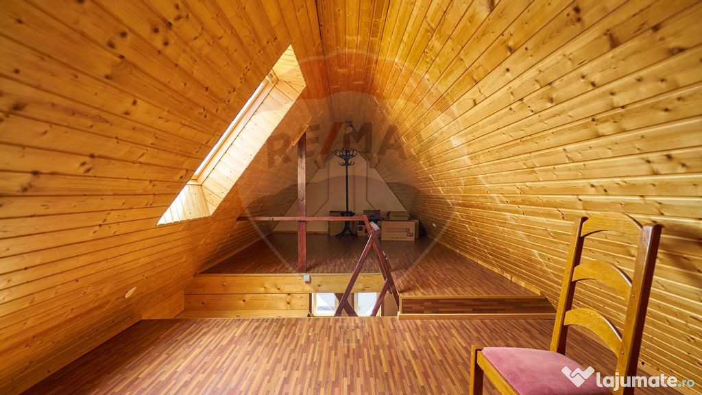 Bucătăria este complet echipată și utilată conform normelor în vigoare, iar curtea generoasă include un loc de joacă pentru copii.